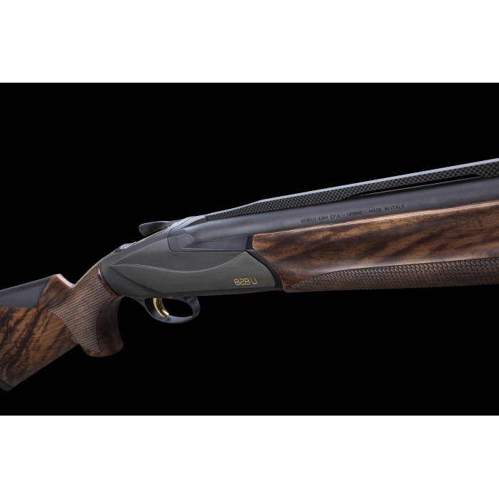 Το κοντάκι έχει το σύστημα Progressive Comfort για μειωμένη ανάκρουση ακόμη και με τα πιο ελαφριά φυσίγγια. Το μήκος του κοντακίου μπορεί να ρυθμιστεί στα 375mm, 365mm ή τα 385mm για γρηγορότερη επώμιση. Οι 40 διαφορετικοί συνδυασμοί κλίσεων επιτρέπουν την τέλεια εφαρμογή σε κάθε σκοπευτή. Το νέο ατσάλινο σύστημα κλειδώματος του 828U έχει σχεδιαστεί έτσι ώστε να έχει διάρκεια και να μειώνει στο ελάχιστο την μηχανική πίεση που ασκείται στη βάση. Η νέα σκανδαλοθήκη μπορεί να αφαιρεθεί πολύ εύκολα και προσφέρει ασφάλεια, απλότητα και αξιοπιστία στην χρήση της. Το σύστημα των εξολκέων καθοδηγείται από το φυσίγγι. Οι ατσάλινοι πείροι εξασφαλίζουν μέγιστη σταθερότητα, αντίσταση τριβής και μεγάλη διάρκεια ζωής. Η ρίγα από ανθρακόνημα προσφέρει τη μέγιστη ισορροπία και ελάχιστο βάρος. Το σύστημα Power Bore με επιλεγμένο αυλό έως 18.5 εγγυάται αξεπέραστες βαλιστικές επιδόσεις. Τα κρυογενή τσοκ 70mm της Benelli εξασφαλίζουν τέλεια κατανομή σκαγιών και διατρητικότητα. Το κοντάκι και η πάπια είναι από επιλεγμένα ξύλα καρυδιάς και αποτελούν τον απόλυτο συνδυασμό κομψότητας και λειτουργικότητας.